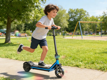 The TOOINS S1 features LED lights under the deck and wheels for fun, low-speed rides. Available in red, green, blue, and pink — colors kids love.