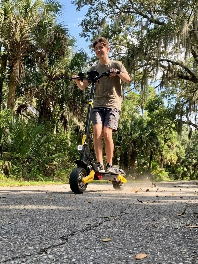 The 37 MPH top speed is thrilling, but make sure you're ready for the bite of those dual disc brakes—they are much stronger than electronic ones.